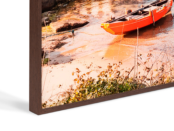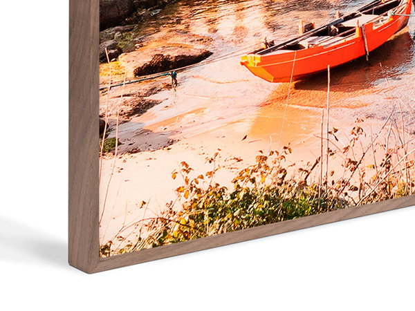 Perfiles con un acabado de maderas nobles y una fina estructura frontal de solamente 6 mm y una altura de 25 mm. Un enmarcado ideal para la fotografía sellada en metacrilato gallery. Fabricado bajo los máximos estándares de conservación Fine Art.